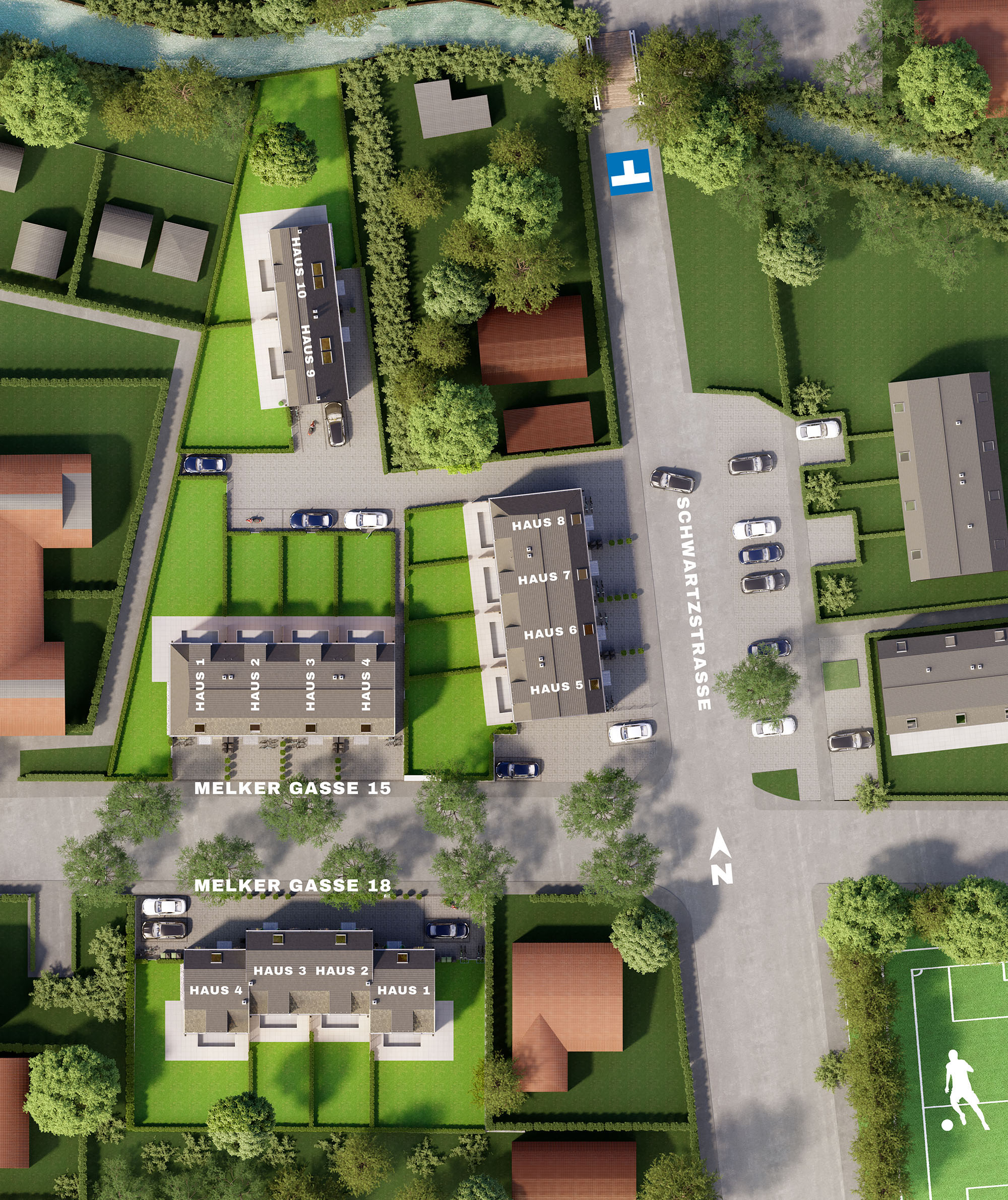 - doppeltes Mauerwerk und Schalldämmplatten zwischen den Hauseinheiten