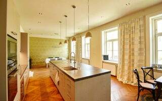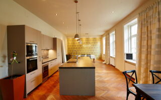- Erdgeschoß: Wohnbereich mit offener Küche 81 m²